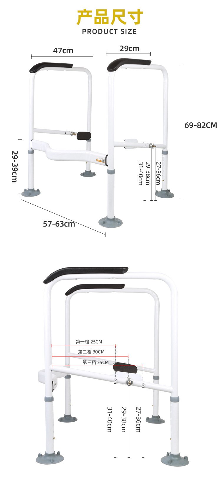CRF’s reinforced iron toilet frame redefines bathroom safety with industrial-strength construction. The oversized 25x50mm curved tubing withstands 150kg (330lbs) loads – 2x the standard requirement – making it ideal for high-traffic nursing homes and hospitals.