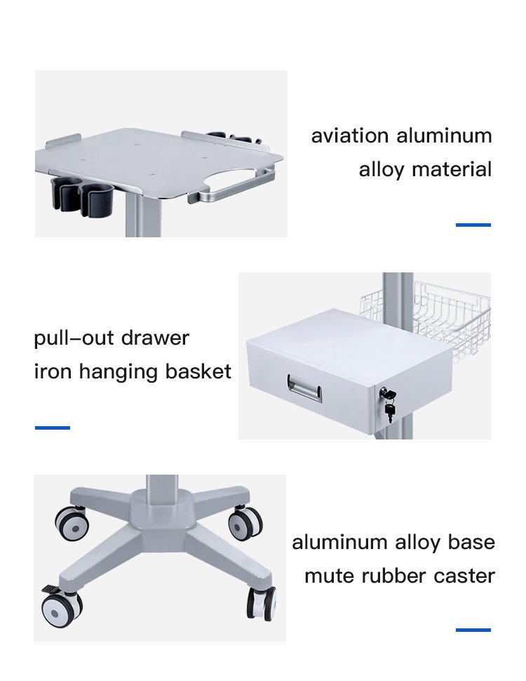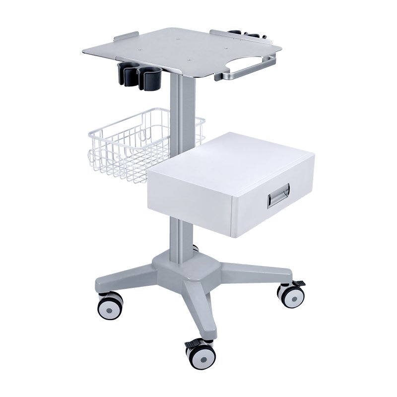 This mobile medical cart is built with advanced features such as high-resolution displays, multiple transducer options, and intuitive user interfaces. These elements collectively aid in comprehensive and streamlined examinations, benefiting both clinicians and patients alike.