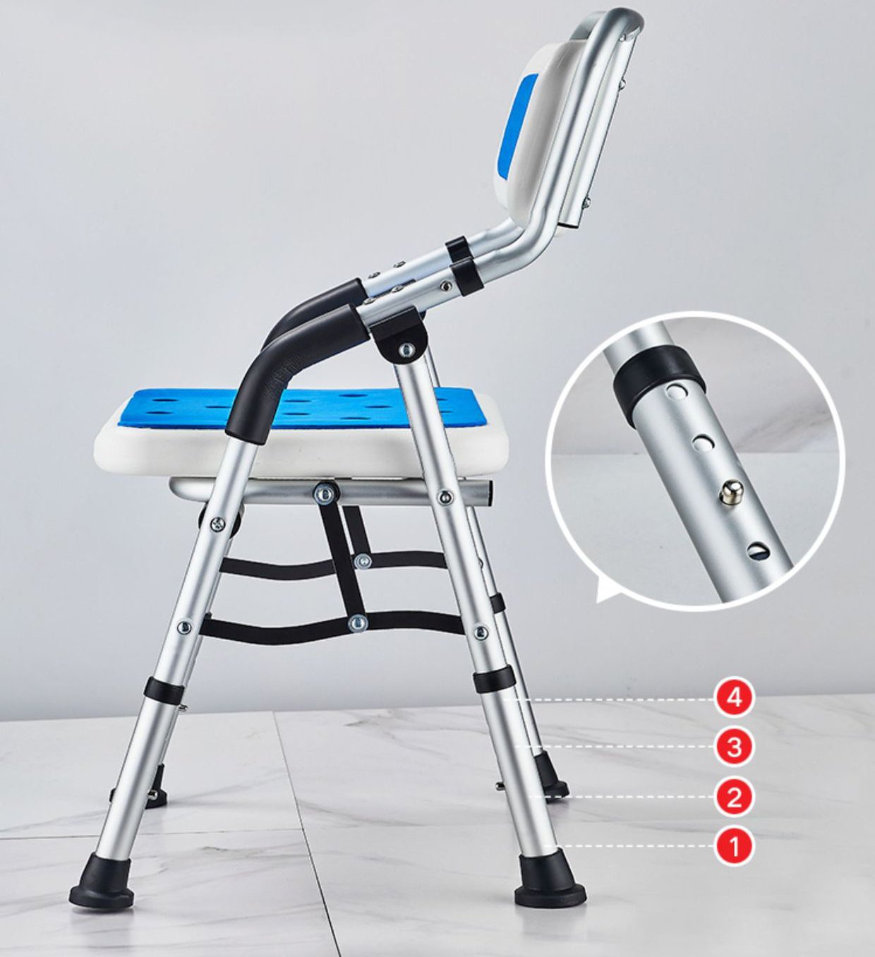 Customized Comfort with 4-Height Adjustment: Easily tailor the seat height across four precise levels to ensure optimal posture, comfort, and safe transfers from wheelchairs or walkers.