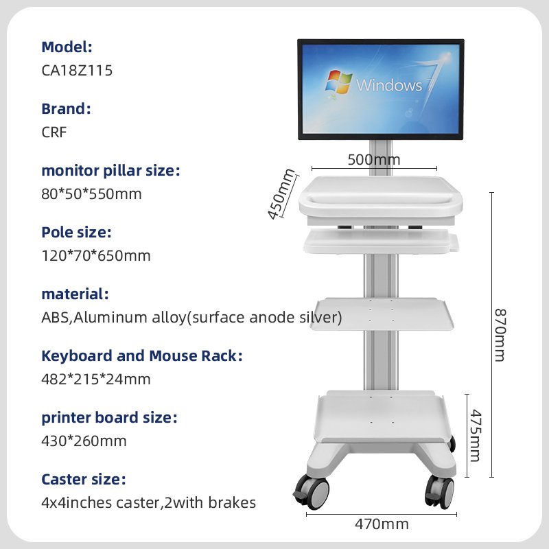 The CRF CA18Z115 Integrated Office Computer Cart is designed for seamless mobility and professional workspace organization. Crafted with premium ABS and aircraft-grade aluminum alloy (surface anodized), this cart combines durability with a sleek, modern aesthetic. Its ergonomic design and robust construction ensure stability and longevity, making it ideal for offices, hospitals, classrooms, and dynamic work environments.