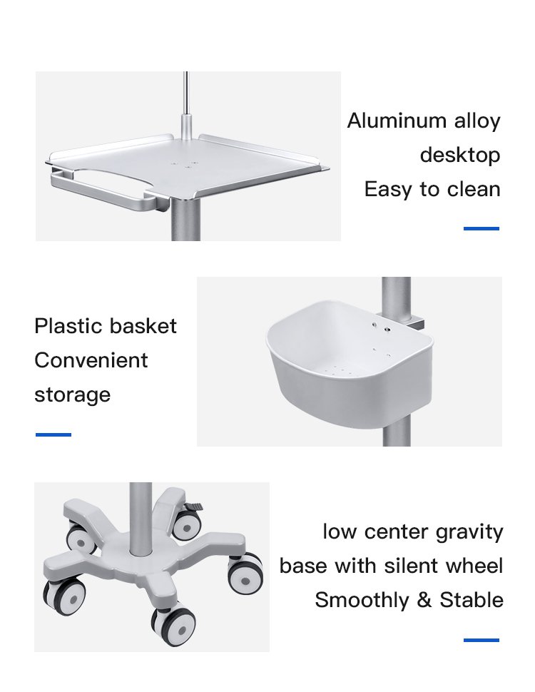 Our aluminum hospital ECG trolley stands out due to its robust and lightweight design, making it an essential piece of hospital medical equipment. Constructed from premium materials, it ensures durability and ease of movement within wards.